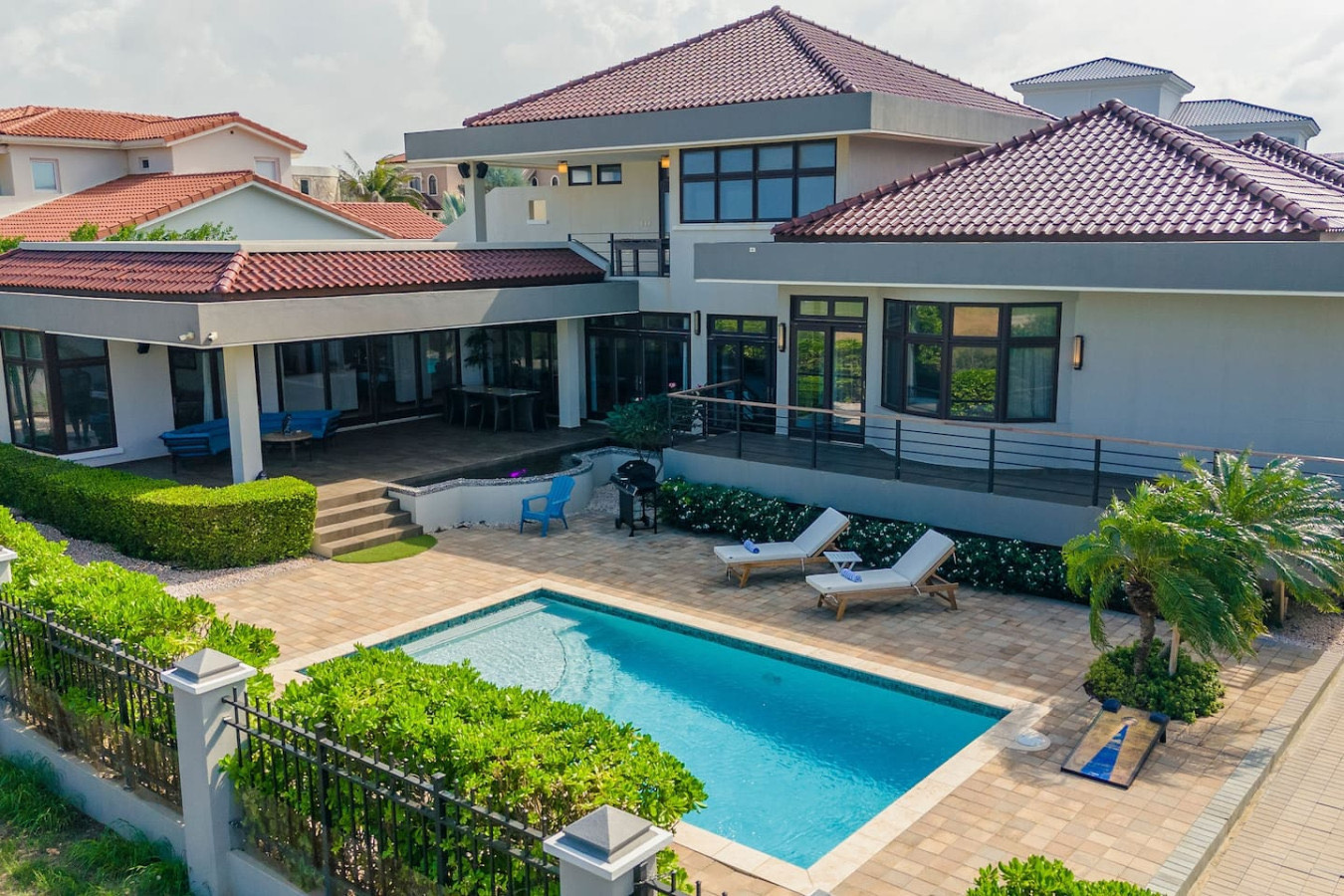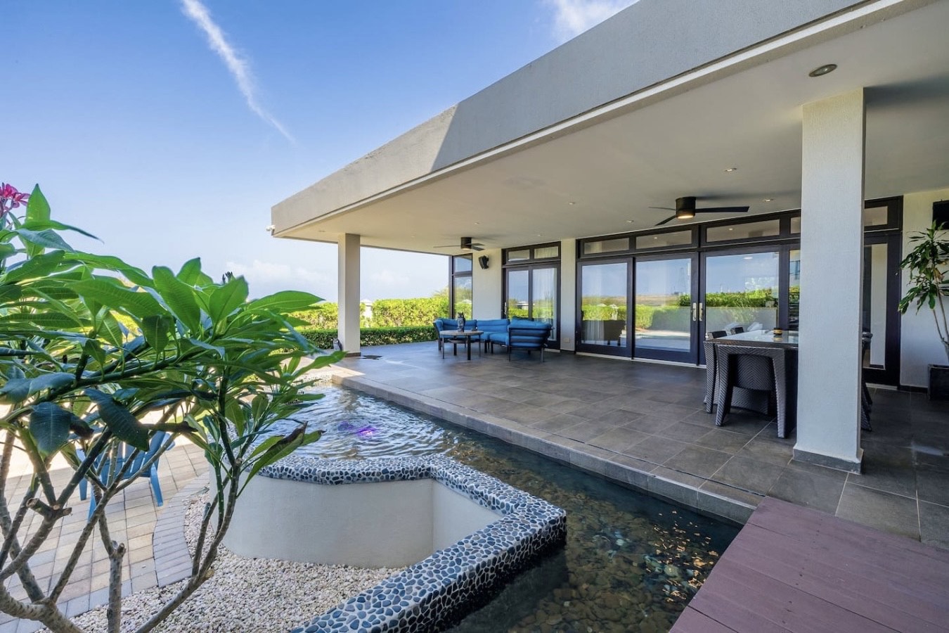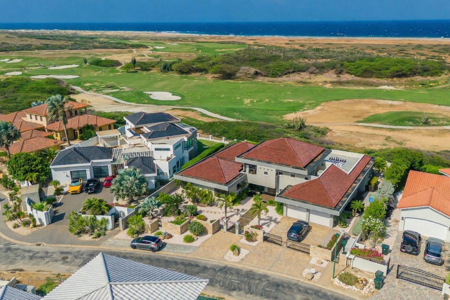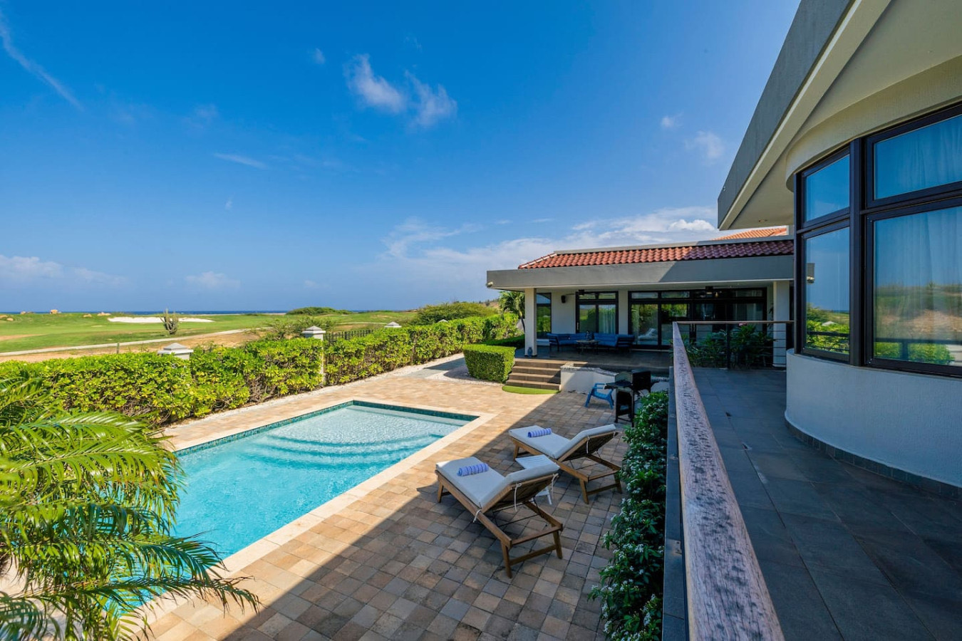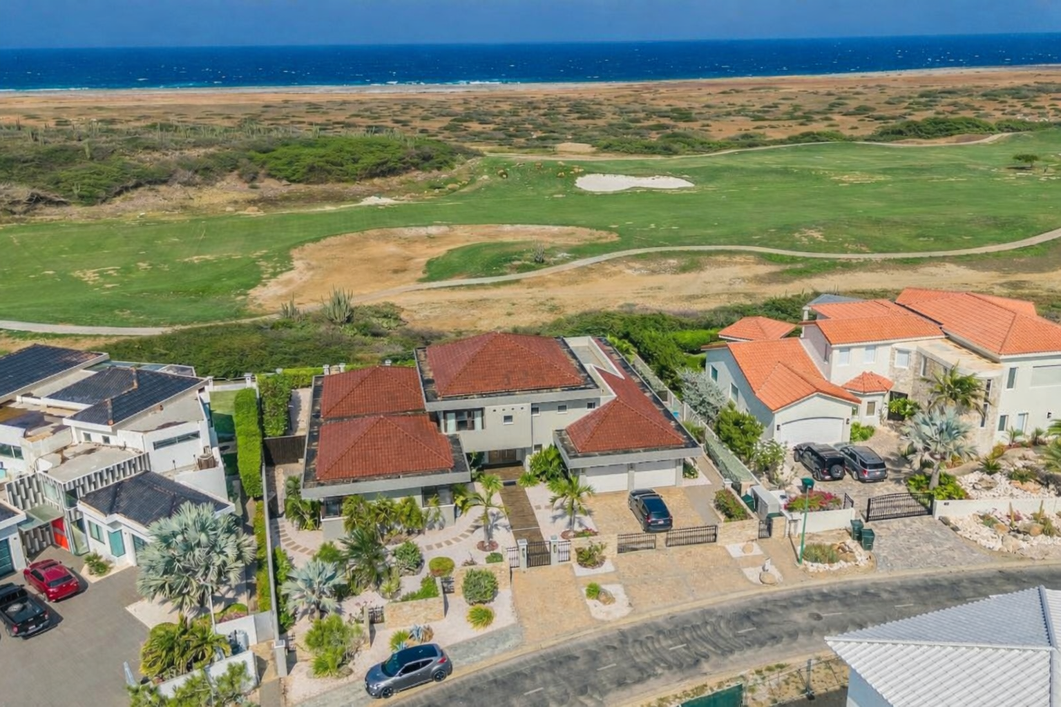 Imagine arriving at a luxury five-bedroom villa perfectly positioned between a golf course and the open ocean — where manicured greens meet endless blue horizons.