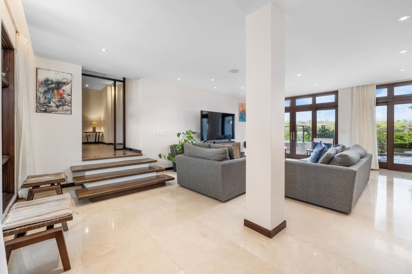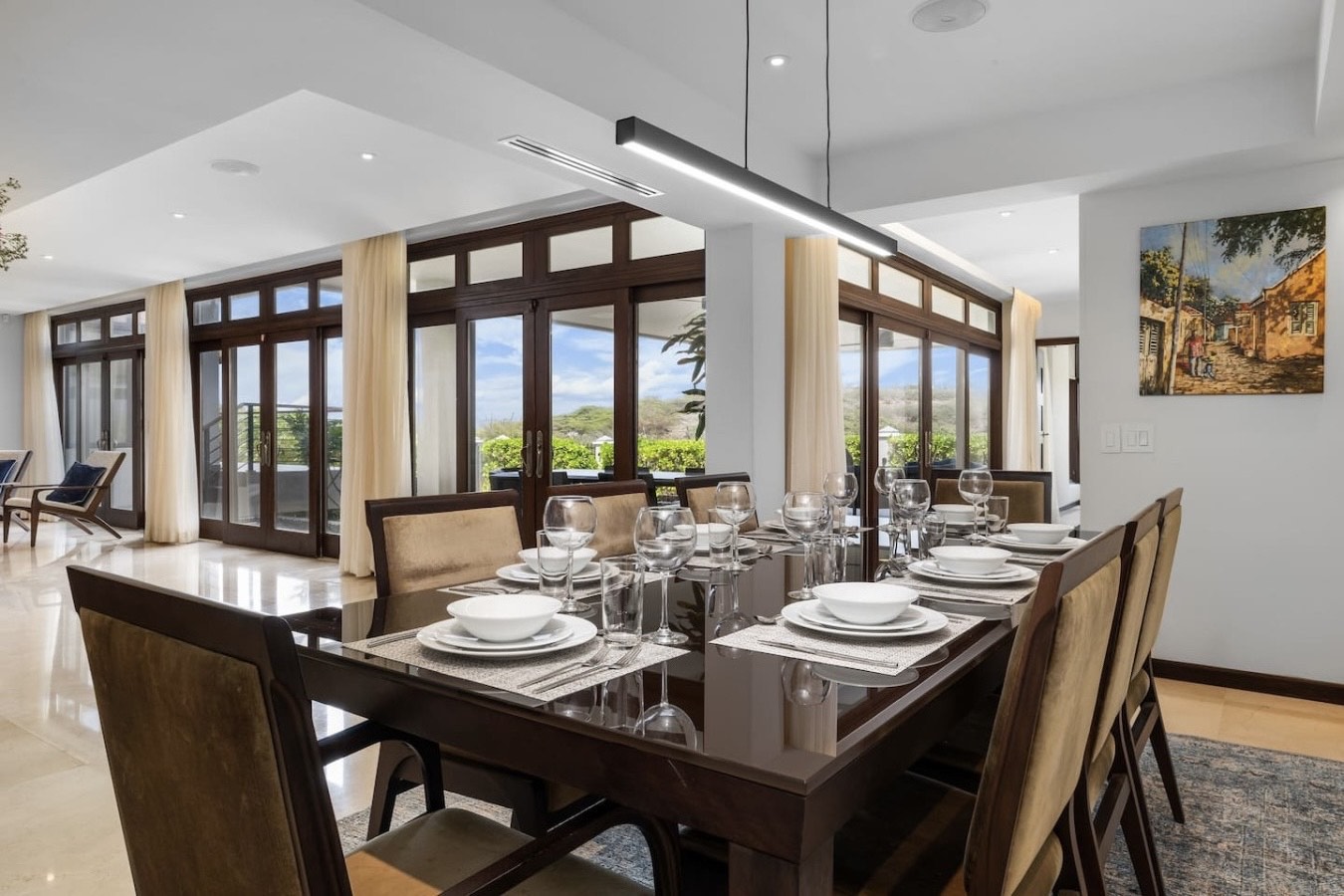 – Seamless indoor-outdoor flow through retractable glass doors
