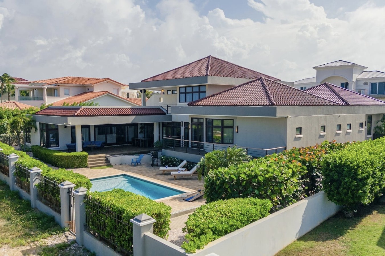 The villa is located at the beautiful community Tierra del Sol Resort & Golf in Noord. The Golf Course is designed by renowned Robert Trent Jones II. It is only a 5 minute drive to the popular beaches, Malmok, Boca Catalina and Malmok, but of course you can also stay at home and enjoy the lovely pool. The High Rise Area with lot’s of restaurants, night life, entertainment and shopping is also a 5 minute drive.